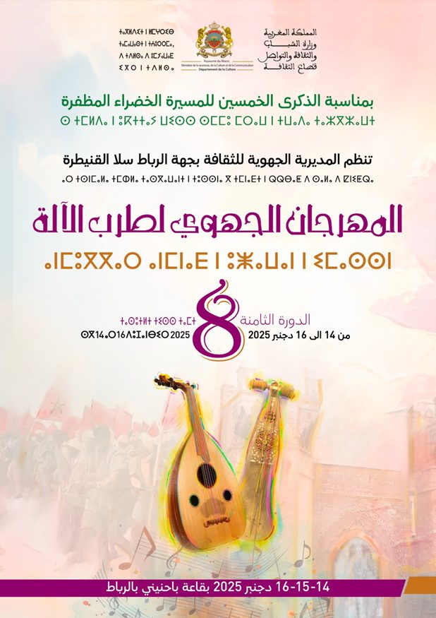 تخليدًا للذكرى الخمسين للمسيرة الخضراء المظفرة تنظم وزارة الشباب والثقافة والتواصل، الدورة الثامنة للمهرجان الجهوي لطرب الآلة، وذلك خلال الفترة الممتدة من 14 إلى16 دجنبر 2025 بمدينة الرباط. وتندرج هذه التظاهرة الفنية ضمن برنامج الاحتفاء بقيم المسيرة الخضراء ورمزيتها التاريخية والوطنية، وكذا في إطار تعزيز الإشعاع الثقافي لجهة الرباط – سلا– القنيطرة وصون التراث المغربي اللامادي، وخاصة فن طرب الآلة باعتباره مكونا فنيا أصيلا متجذرا في الهوية المغربية.