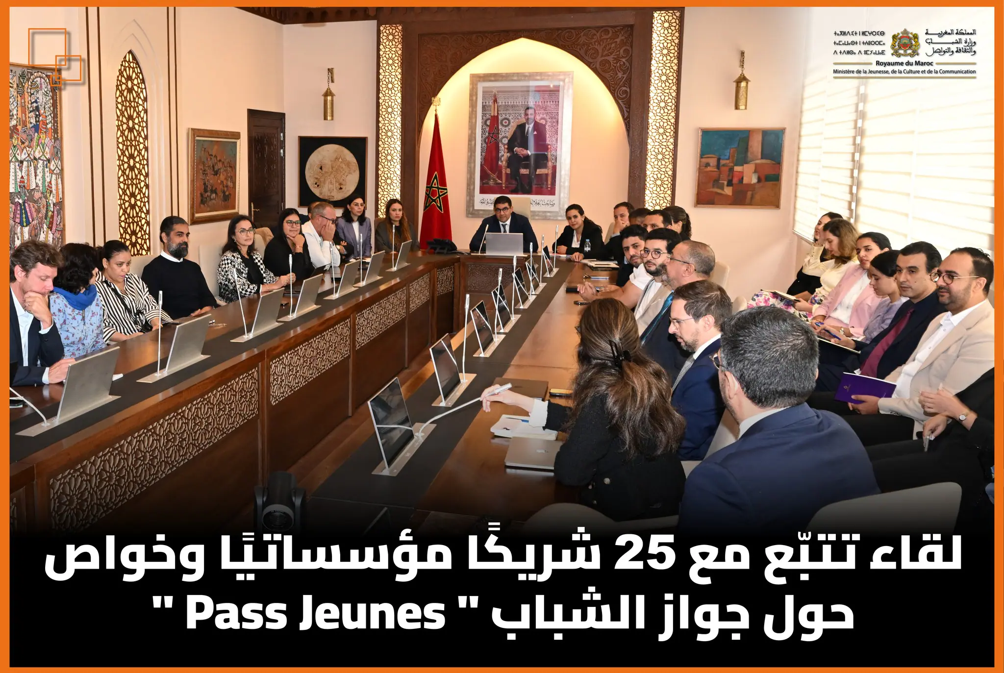 ترأس السيد الوزير لقاء تتبّعٍ بحضور 25 شريكًا مؤسساتيًا وخواصًا خُصص لعرض حصيلة برنامج جواز الشباب “Pass Jeunes” بعد عشرة أشهر من تعميمه، والذي سجّل أزيد من 1,5 مليون تحميل على المنصّات الرقمية.