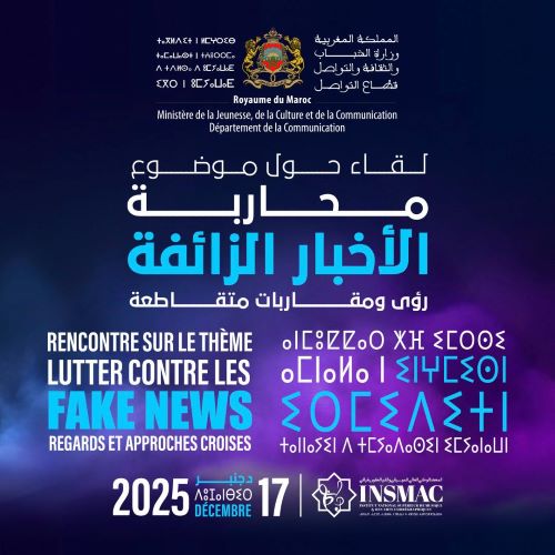 تنظم وزارة الشباب والثقافة والتواصل – قطاع التواصل – لقاء حول موضوع: “مكافحة الأخبار الزائفة: “مقاربات ورؤى متقاطعة”، وذلك يوم الأربعاء 17 دجنبر 2025، بالمعهد الوطني العالي للموسيقى والفن الكوريغرافي بالرباط.
